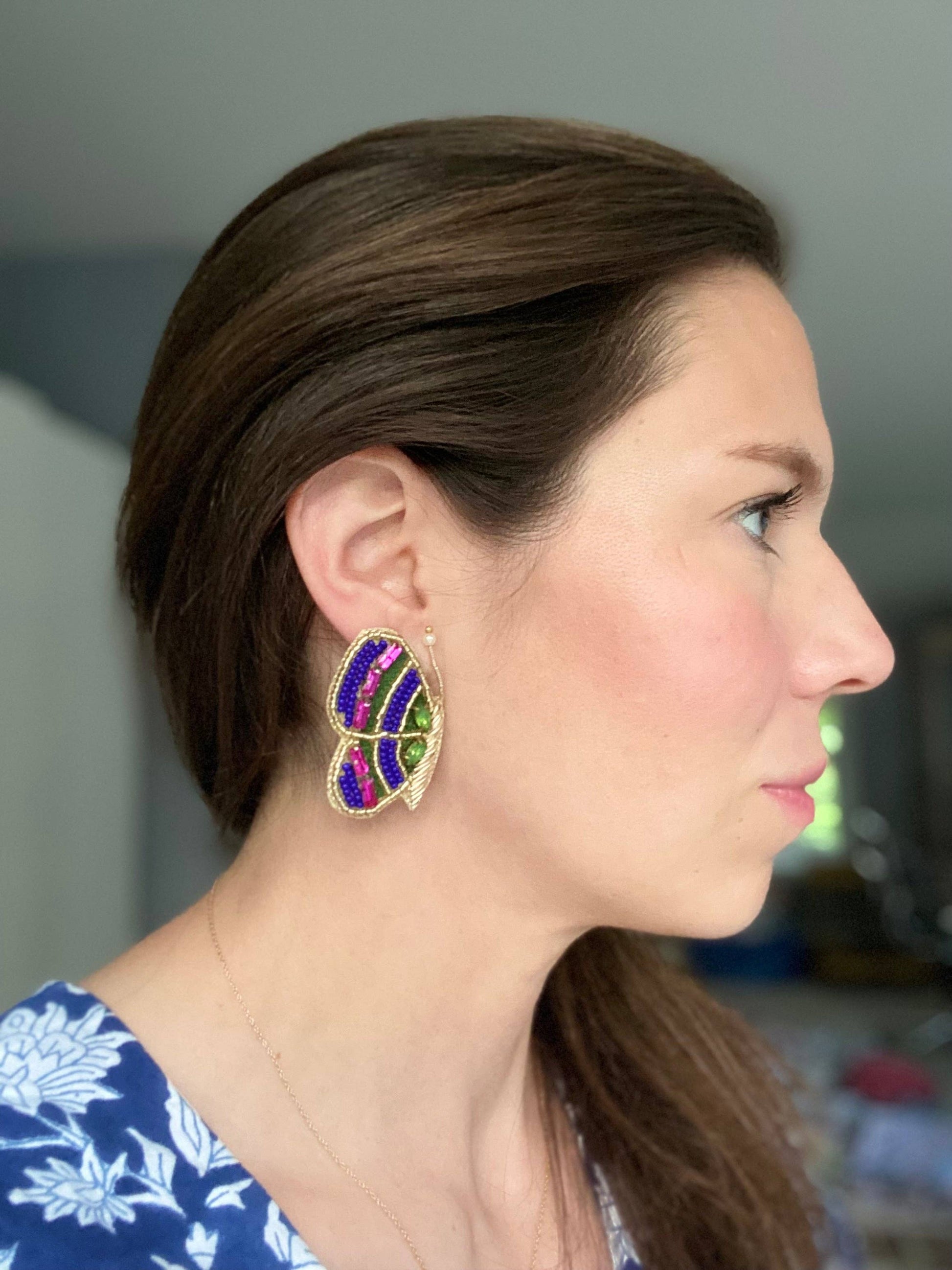 The details on these earrings are incredible! Lightweight with suede back. Approximately 1” W x 2” L.
