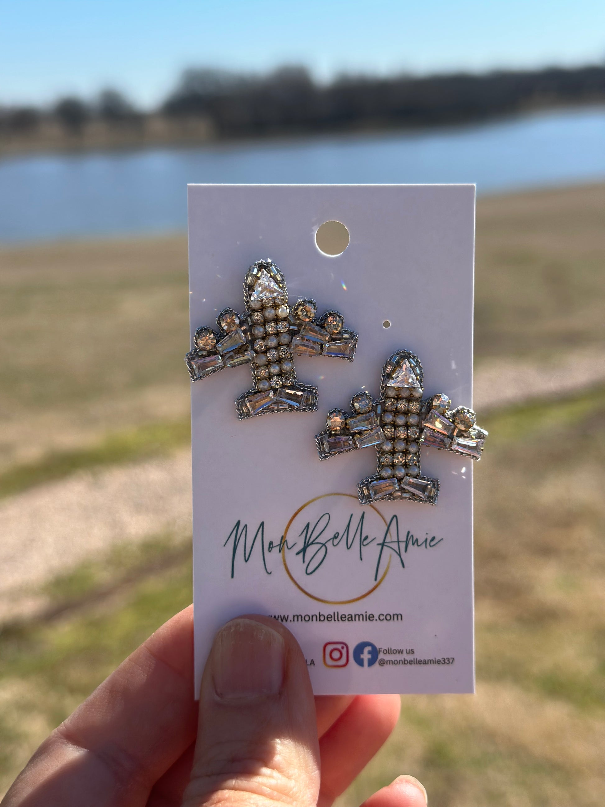 Take your style to new heights with our Catching Flights Airplane Stud Earrings! Designed for jet-setters and adventure lovers, these stunning studs feature a chic airplane shape adorned with silver, gold, and clear beads and jewels for the perfect touch of sparkle. Crafted with both elegance and comfort in mind, they come with a soft suede backing and hypoallergenic 18K gold-plated posts, making them ideal for all-day wear. Whether you’re boarding your next flight or simply dreaming of your next getaway, these earrings are the perfect accessory for any travel enthusiast!