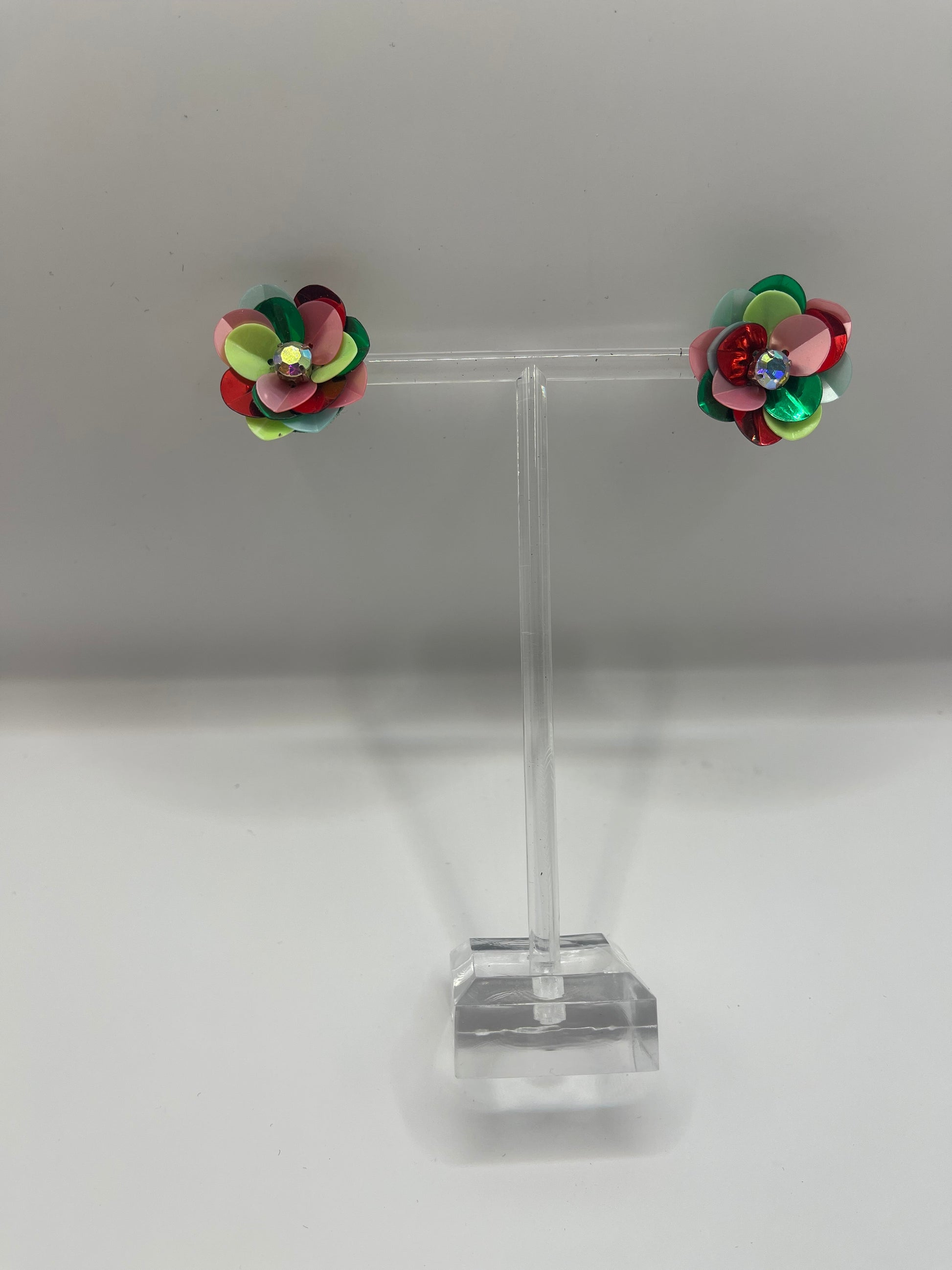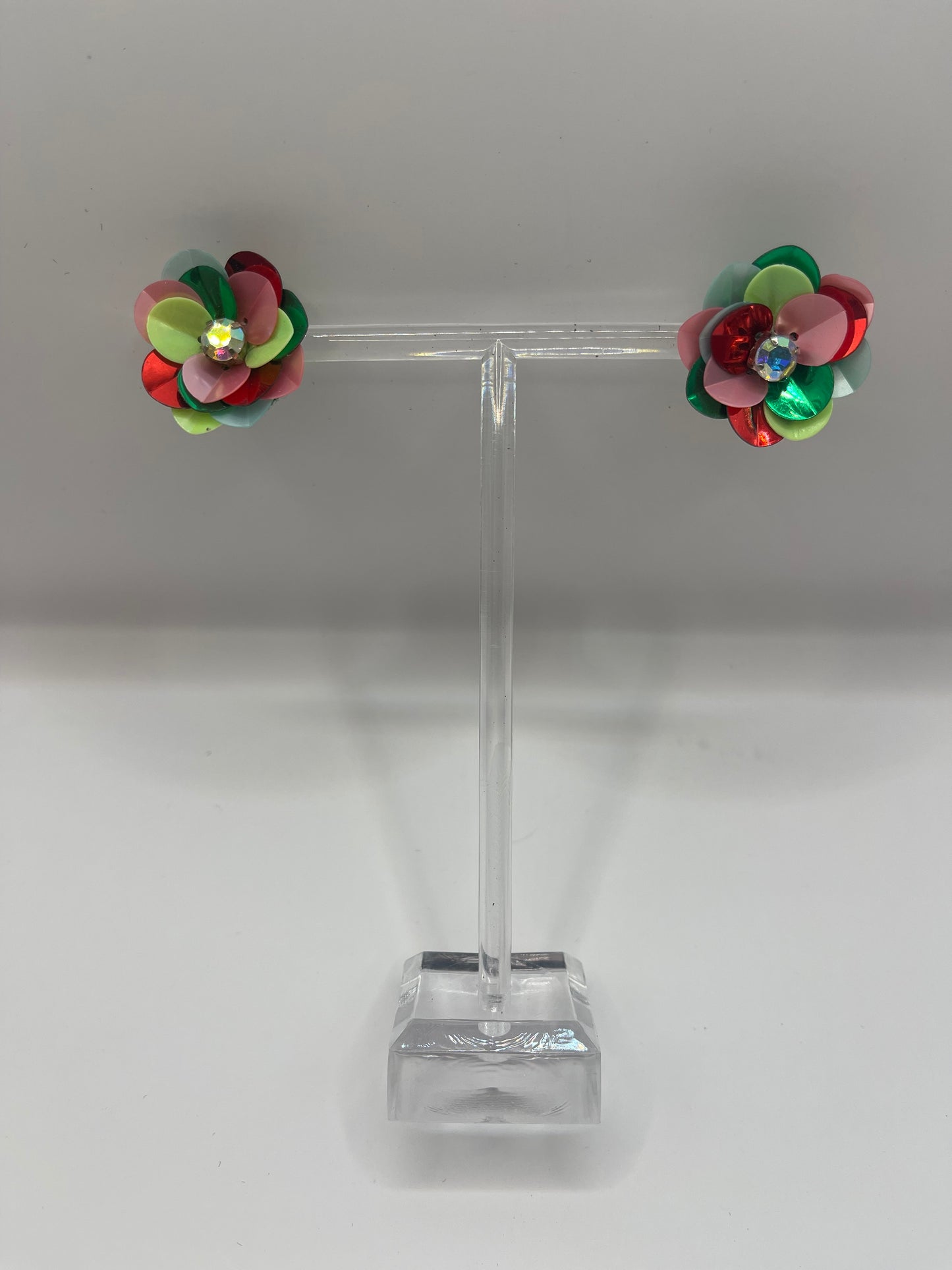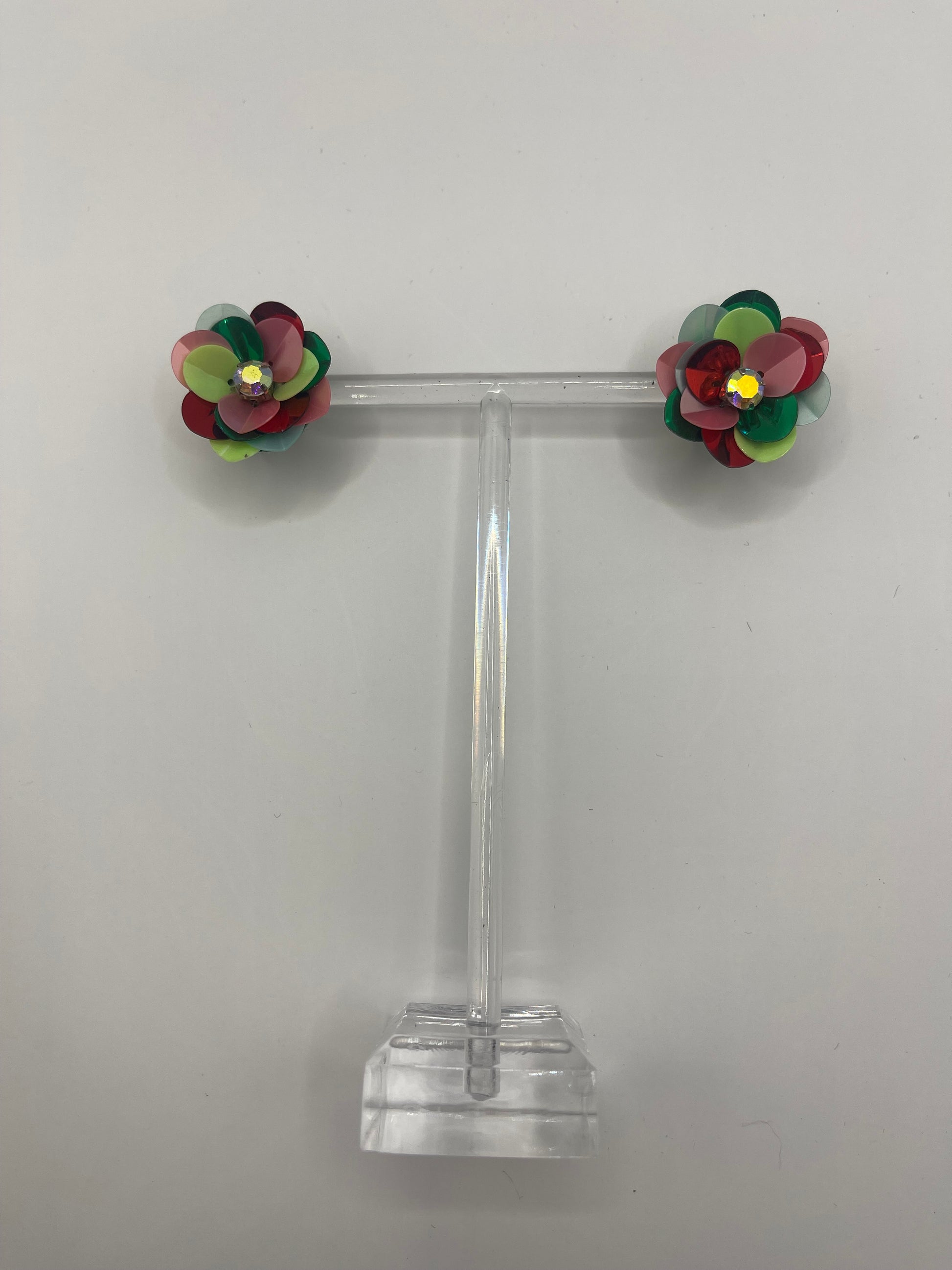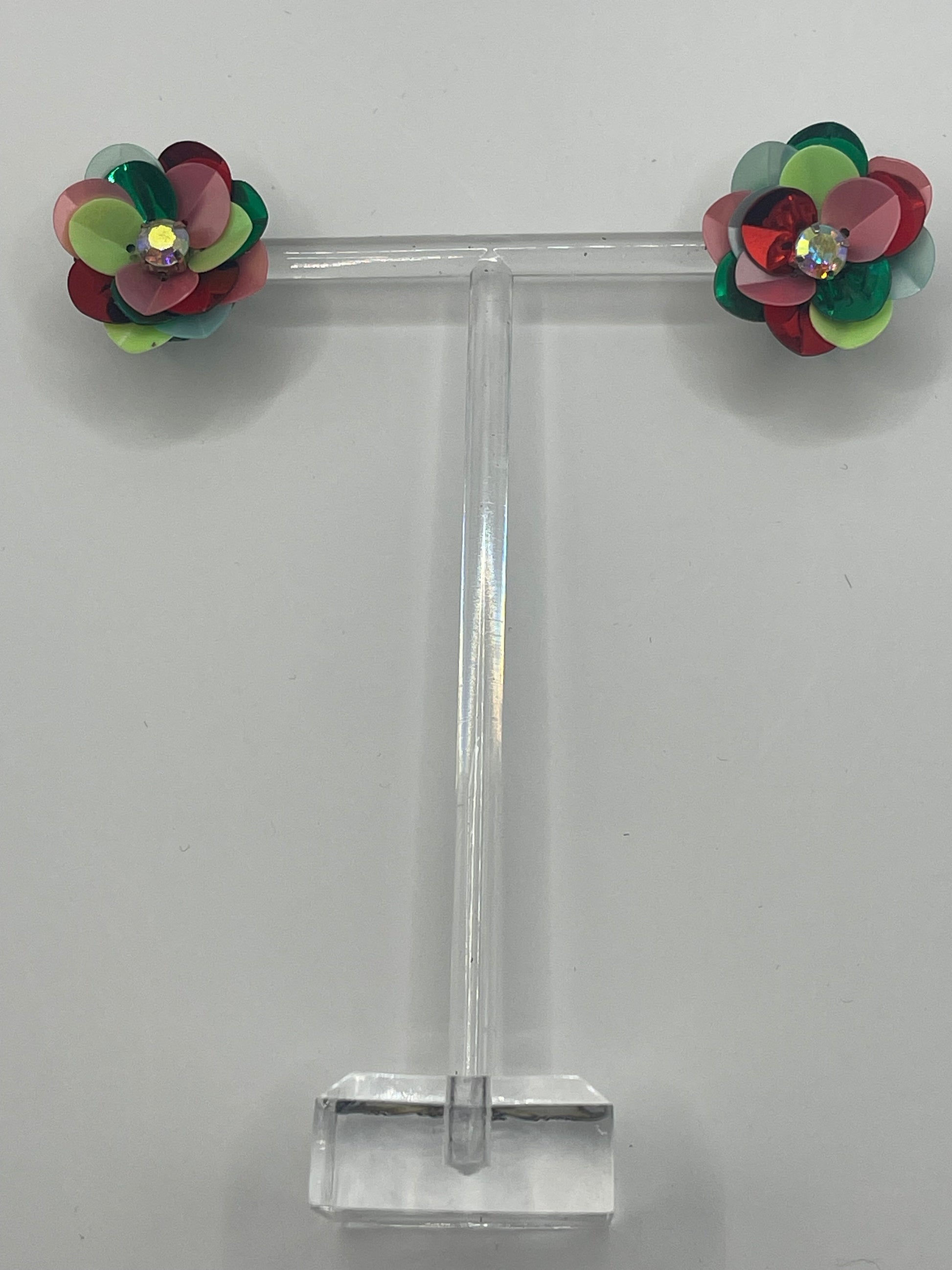 Christmas Sequin Flower Stud Earrings with Lime Green