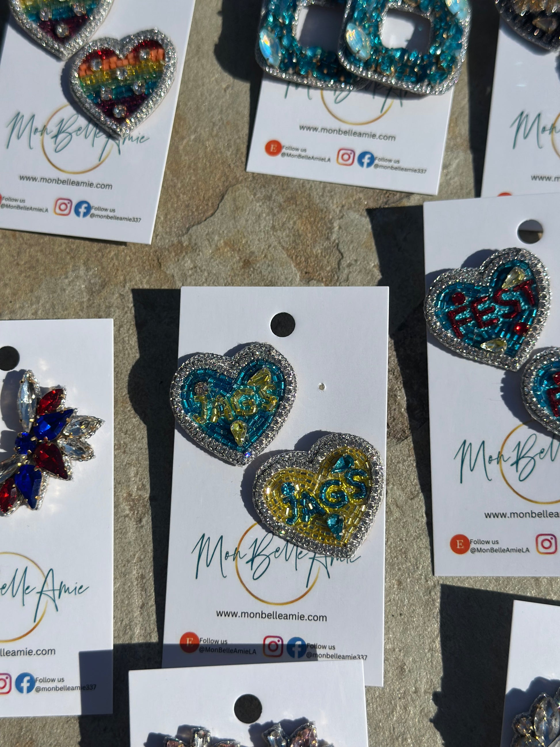 Show your Southern University pride in style with these Jags Heart-Shaped Beaded & Jeweled Stud Earrings! Designed in the school’s signature Carolina blue and yellow, each earring features intricate hand-beading and shimmering silver rhinestones for the perfect touch of sparkle. One earring is bold yellow, while the other is vibrant blue, both featuring the word “Jags” for a standout game-day look. Made for comfort and durability, they have a soft suede backing and hypoallergenic 18K gold-plated posts, making them perfect for all-day wear. Whether you’re cheering from the stands or showing school spirit year-round, these earrings are a must-have for any Southern University fan!