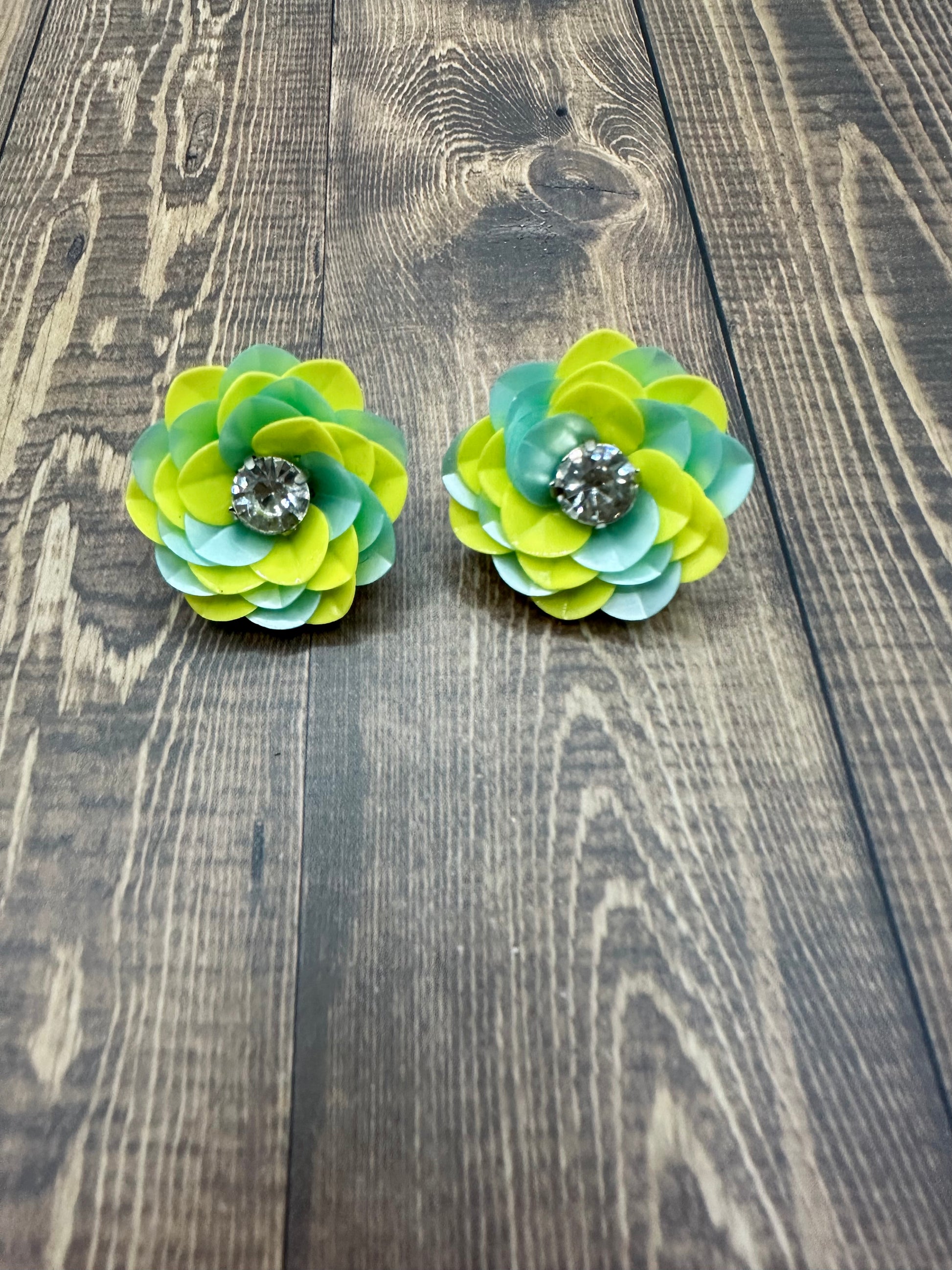 Light Blue and Yellow Sequin Flower Stud Earrings