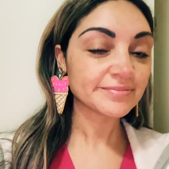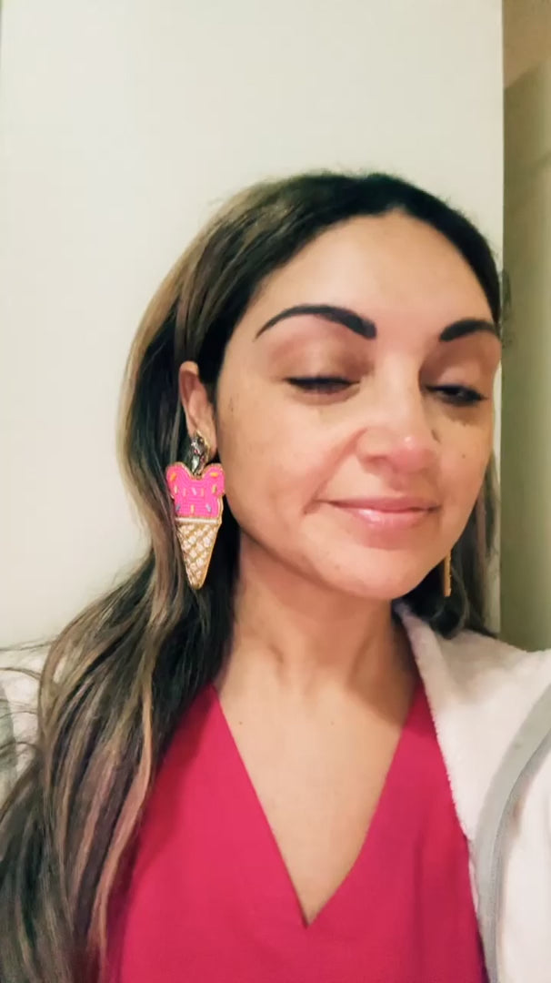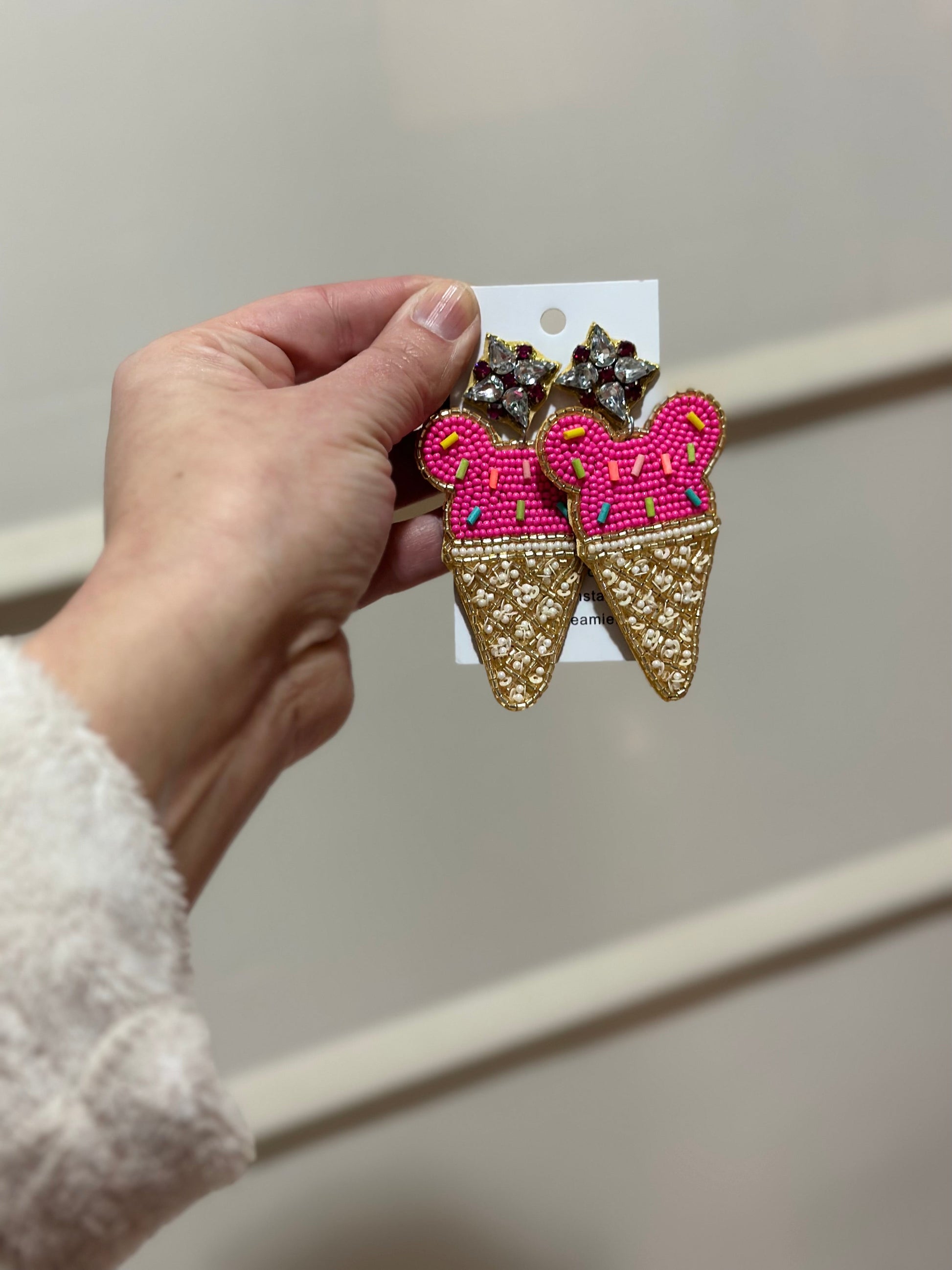Bring the magic of your favorite park snacks to life with our Magic Scoop Dangles! These eye-catching earrings feature a glittering golden cone topped with a bright pink, mouse-ear-shaped scoop covered in rainbow sprinkles – a sweet nod to those iconic theme park treats we all crave. Whether you’re planning your next magical vacation or just want a little sparkle with your soft serve, these earrings are the perfect pick. Lightweight with a soft felt backing, they’re comfy enough for a full day of churros, character hugs, and castle photos!