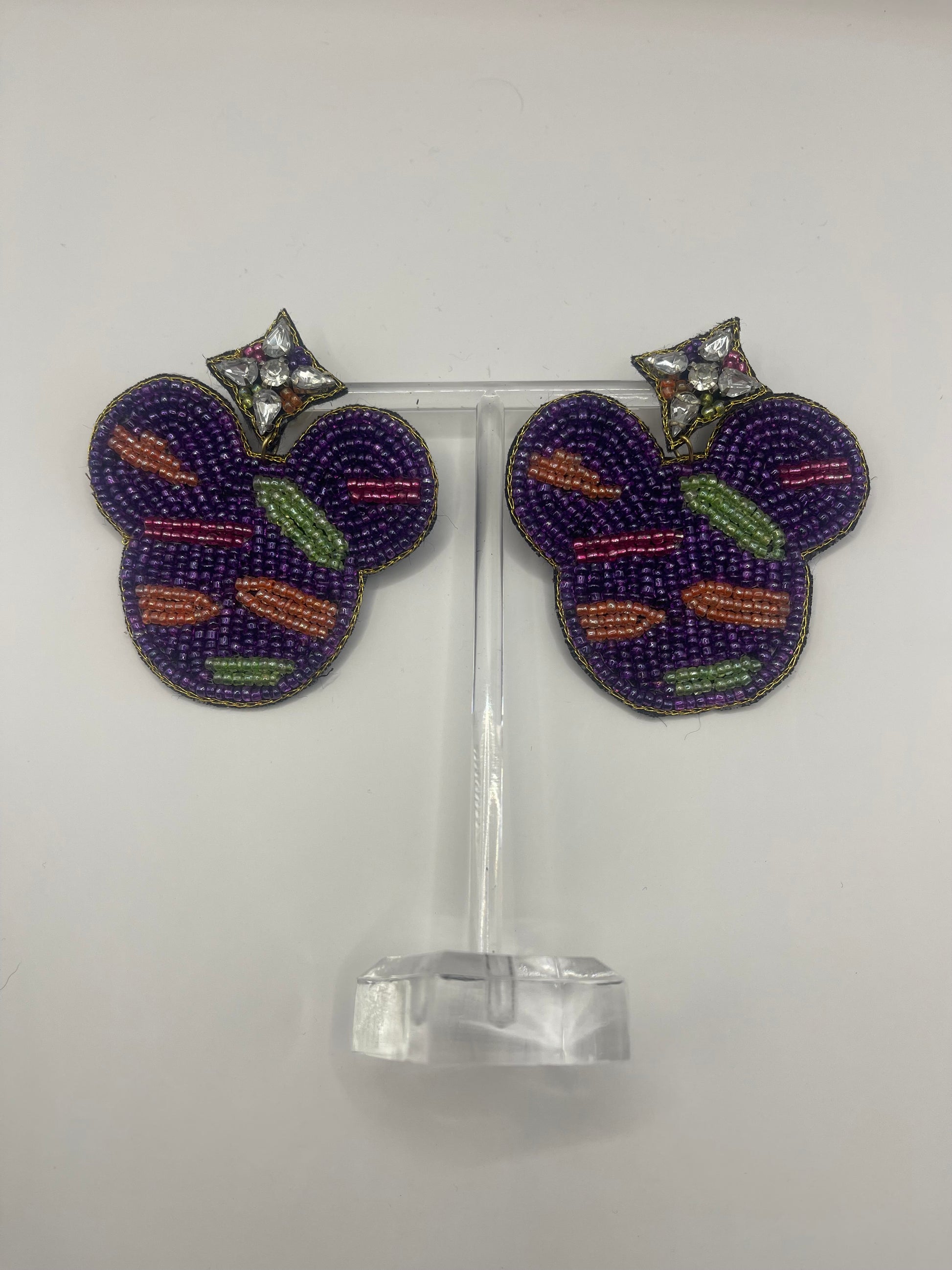 Custom made Mon Belle Amie earrings - stitched and beaded. These Mouse Tiger Print Earrings are perfect to wear to Animal Kingdom.