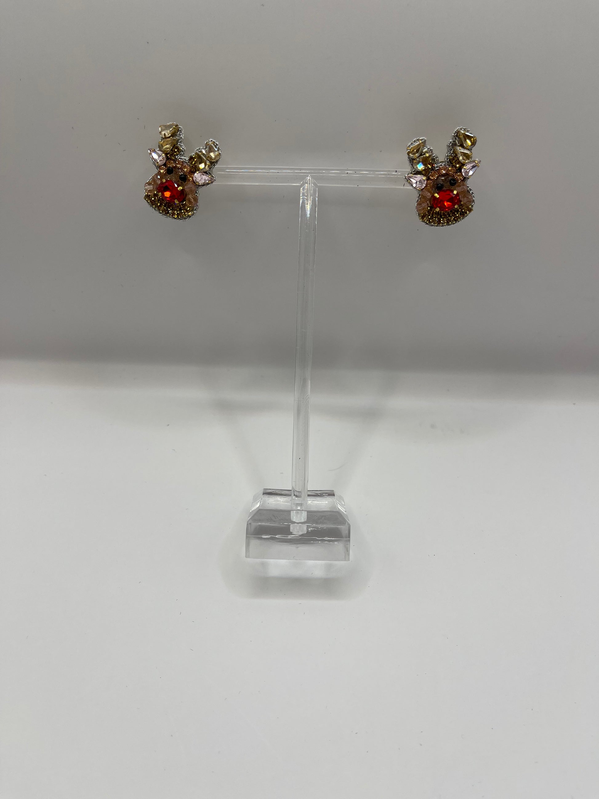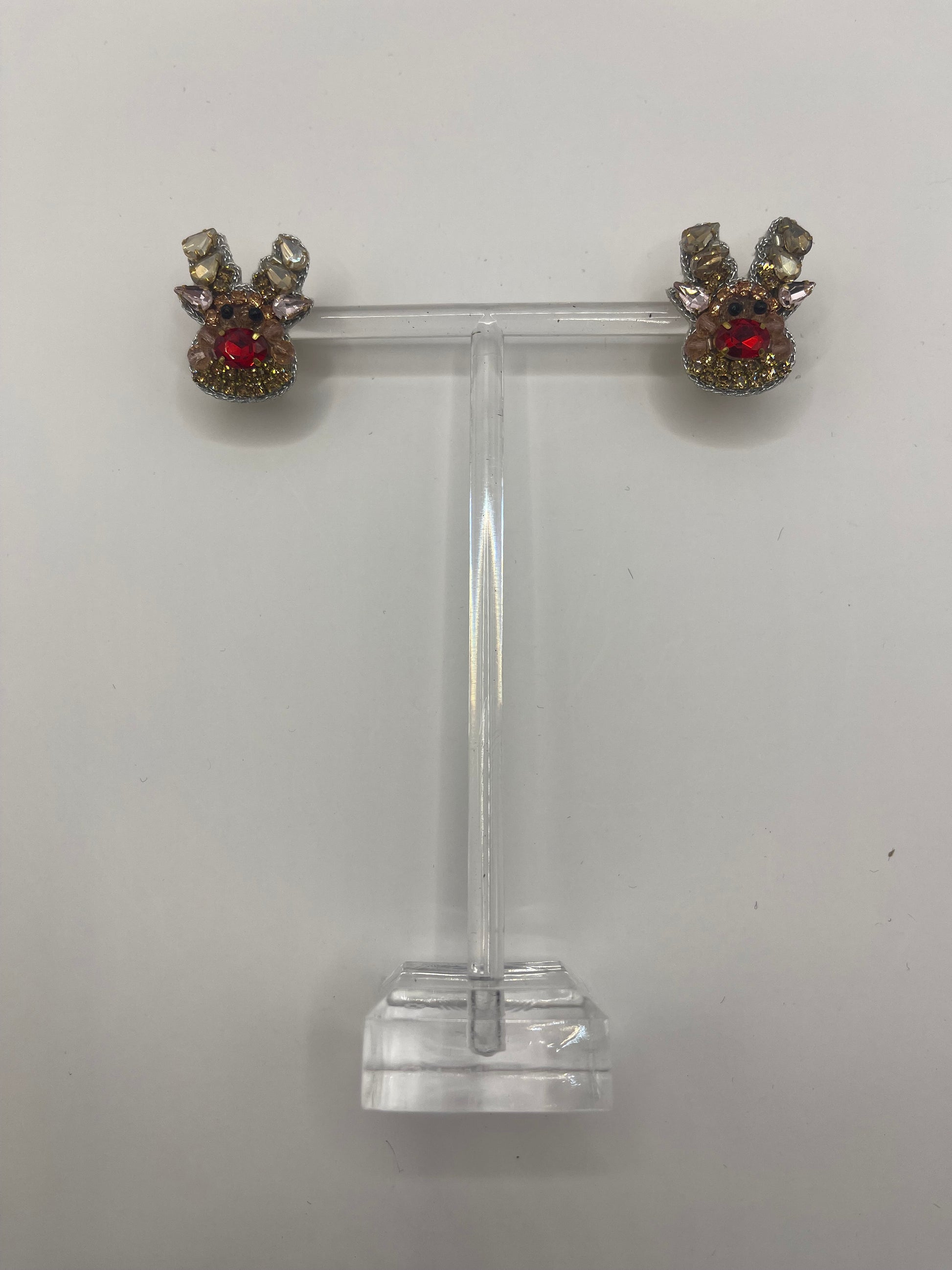 Oversized Jeweled Reindeer Stud Earrings