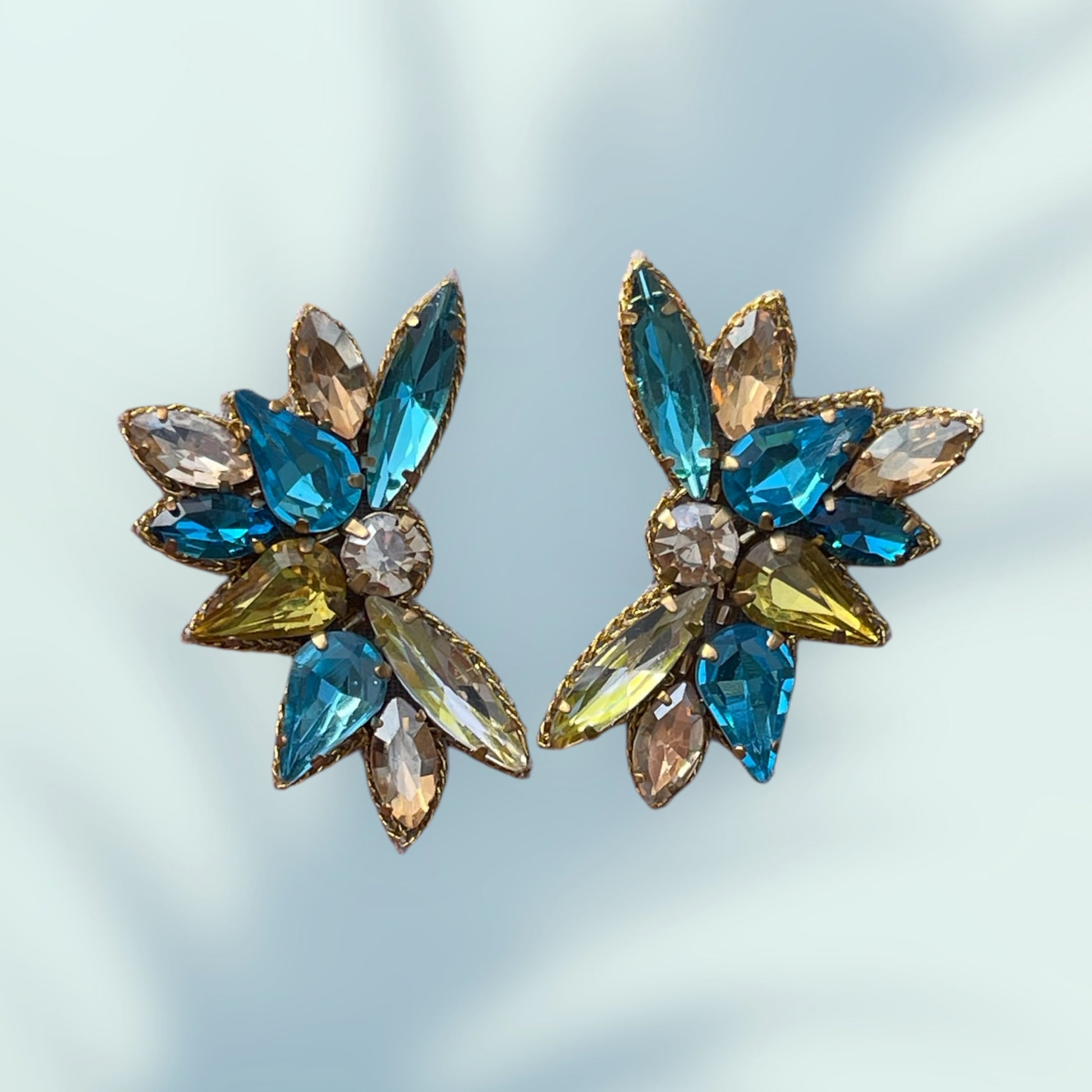 Make a bold and elegant statement with the Radiance Turquoise and Green Gem Stud Earrings! These stunning studs feature a brilliant arrangement of faceted turquoise and green gemstones, creating a striking and radiant effect. The intricate beaded details and shimmering jewels add a luxurious touch, perfect for both everyday wear and special occasions. Designed for ultimate comfort, they include a soft suede backing and hypoallergenic 18K gold-plated posts, ensuring a lightweight feel and irritation-free wear. Whether you’re dressing up or adding a pop of color to your look, these earrings bring the perfect blend of sophistication and sparkle.